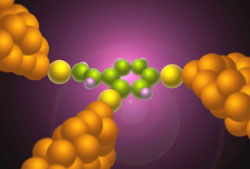 هنگامی که این ترانزیستور در حالت خاموش قرار دارد تقارن ویژهی برخی از مولکولها، موجب تداخل مخرب امواج الکترونی و در نتیجه مانع از برقراری جریان داخل آن میشود. با تغییر ولتاژ پایانهی سوم ترانزیستور میتوان این تقارن مولکولی را بههم زده جریان داخل آن را برقرار نمود. این ترانزیستور علاوه بر اندازهی بسیار کوچکی که دارد نسبت به فناوریهای نیمهرسانای موجود از دو مزیت عمده برخوردار است که عبارت است از: