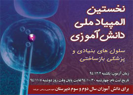 گفتنی است؛ آزمون اوّلین دورۀ المپیاد علمی سلولهای بنیادی و پزشکی ساعت 9 صبح روز دوم اسفندماه 94 برگزار میشود .