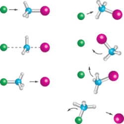 با نقشهبرداری دقیق از آنچه در هنگام برخورد مولکولها اتفاق میافتد دانشمندان توانستند جزویات پیشبینی نشدهای از واکنش جایگزینی نوکلئوفیلی دو مولکولی (SN2) (انتقال مولکولی بنیادین در تولید مواد آلی) را آشکار کنند. بهگزارش سایت «اخبار مهندسی و علوم شیمی» (Chemical & Engineering News)، در مکانیسم کلاسیک SN2 زمانی که یک نوکلئوفیل مانند: «آنیون کلرید» به ترکیبی نظیر: «متیل یدید» (Methyl Iodide) هجوم آورده «متیل یدید» «گروه ترککننده» (Leaving Group) را بیرون رانده و مانند چتری سبک در باد متحمل وارونگی در ساختار شده «متیل کلرید»بهدست میآید. فیزیکدانی بهنام «رولاند وستر» (Roland Wester) و همکارانش از گروههای «ماتیاس ویدمولر» (Matthias Weidmuller) از دانشگاه «فریبورگ» (Freiburg) در آلمان و گروه «ویلیام ل. هیس» (William L. Hase) از دانشگاه «تکنولوژی» تگزاس، شواهدی مستقیم برای این فرایند در فاز گاز آماده کردهاند.