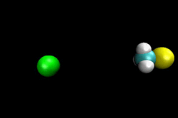 اما آنها همچنین مکانیسم پیشبینینشده و اضافیای کشف کردند. در این مسیر جدید بهنام «مکانیسم غیرمستقیم» (Roundabout Mechanism)، «کلرید» به گروه «متیل» برخورد کرده و قبل از جایگزینی «کلرید»، تمام مولکول «متیل یدید» را 360 درجه میچرخاند.