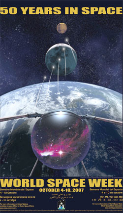 50 سال از حضور انسان و دستیابی او به فضا میگذرد؛ حضوری که با پرواز «اسپوتنیک – 1» آغاز شد و با گردش به دور زمین، پیادهروی در فضا، مخابرهی زندهی تصاویر فضانوردان از فضا به زمین، قدم گذاشتن به سطح ماه، ارسال کاوشگرها به سایر سیارهها، ساخت و بهکارگیری تلسکوپهای فضایی، ایجاد ایستگاههای فضایی برای سکونت انسان در فضا و انجام آزمایش و اخیراً سفرهای توریستی به ماورای جو ادامه داشته است. بهگزارش خبرگزاری دانشجویان ایران (ایسنا)، بهمنظور گرامیداشت تلاشهای بشر برای دستیابی به فضا، 4 تا 10 اکتبر هر سال بهعنوان «هفتهی جهانی فضا» نامگذاری شده و طی آن مراسم مختلفی در سراسر دنیا برگزار میشود. البته کشورهای اسلامی طی سه سال اخیر بهدلیل تقارن این هفته با ماه مبارک رمضان با هماهنگی سازمان ملل مراسم این هفته را با تأخیر برگزار میکنند. «هفتهی فضا» امسال از 19 تا 25 آبان 1386 و با شعار«50 سال در فضا» گرامی داشته میشود.