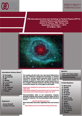 مرکز تحقیقات فیزیک نظری (IPM) در همین زمینه از اساتید و پژوهشگران داخلی و خارجی دعوت کرد تا در مدرسهی پیشرفتهی ذرات که برای دانشجویان تحصیلات تکمیلی ترتیب داده شده بود شرکت کنند. این مدرسه با سخنرانیهای مقدماتی و آخرین پژوهشها به انجام رسید. موضوعات مورد بحث به قرار زیر بود: