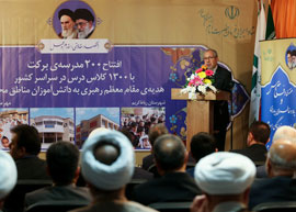 به گزارش ایسنا، مرسم افتتاح مدرسه برکت با 1300 کلاس درس در سراسر کشور هدیه مقام معظم رهبری به دانش آموزان مناطق محروم کشور امروز با حضور وزیر آموزش و پرورش و رئیس دفتر مقام معظم رهبری در مدرسه برکت واقع در شهرک پرندک برگزار شد.