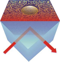 آنها نور را بهسمت لیوان با زاویهی کمی تاباندند. بدینترتیب نور کاملا منعکس میشود. فقط بخش کوچکی از نور در مایع نفوذ مینماید.