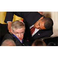 مدال «آزادی» رئیس جمهوری امریکا به دانشمند و فیزیکدان بزرگ قرن «استفان هاوکینگ» اعطا شد. به گزارش ایسنا، «استفان هاوکینگ» این مدال را که بزرگترین نشان افتخار برای یک شهروند آمریکایی است از «باراک اوباما» رئیس جمهور امریکا دریافت کرد. «اوباما» ضمن اعطای این نشان به پروفسور «هاوکینگ» که کتاب وی تحت عنوان «تاریخچهی زمان» رکورد پرفروشترین کتاب را کسب کرد، گفت: «هاوکینگ» از روی صندلی چرخدار خود ما را در سفر به دوردستترین و عجیبترین نقاط کیهانی راهنمایی و هدایت کرد. در این جریان او قدرت تصور و تجسم را در ما برانگیخت و قدرت روح انسان را به ما نشان داد. پروفسور «هاوکینگ» هم اکنون استاد افتخاری ریاضیات در دانشگاه «کمبریج» و یکی از 16 نفری است که این نشان را دریافت کردهاند و همهی آنها از سوی «اوباما» با عنوان عاملان فوق العاده تغییر توصیف شده اند. گفتنی است، «استفان ویلیامز هاوکینگ» در تاریخ 8 ژانویه سال 1942 در شهر «اکسفورد» در انگلیس متولد شد. خانهی پدری وی در شمال «انگلیس» بود اما در طول جنگ جهانی دوم «اکسفورد» مکانی امنی برای کودکان محسوب میشد. وقتی او به سن 8 سالگی رسید خانواده وی به «سنت آلبانز» شهری در حدود 20 مایلی شمال لندن نقل مکان کردند. در سن 11 سالگی استفان به مدرسهی «سنت آلبانز» رفت و سپس به کالج دانشگاه آکسفورد که کالج قدیمی پدرش بود رفت. «استفان» مایل به تحصیل در رشتهی ریاضیات بود اگرچه پدرش پزشکی را ترجیح میداد. در کالج دانشگاه رشتهی ریاضیات تدریس نمیشد بنابراین استفان در عوض رشتهی فیزیک را انتخاب کرد. پس ازسه سال و در حالی که کار زیادی انجام نداده بود استفان در رشتهی علوم طبیعی اولین دیپلم افتخاری را کسب کرد. پس از آن «استفان» برای تحقیقات در رشتهی «کیهان شناسی» به «کمبریج» رفت که در آن زمان هیچ کس در «آکسفورد» در این حوزه فعالیت نمیکرد. استاد وی «دنیس سیاما» بود اگرچه استفان امیدوار بود که با «فرد هویلی» که در این رشته در کمبریج کار کرده بود، تحقیقاتش را انجام دهد. پس از کسب دکتری استفان به عنوان اولین محقق انتخاب شد و سپس عنوان محقق تخصصی را در کالج گونویل و کایوس به خود اختصاص داد. وی پس از ترک موسسه نجوم در سال 1973 به دپارتمان ریاضی کاربردی و فیزیک تئوریک رفت و از سال 1979 مقام استادی Lucasian را در رشته ریاضیات کسب کرد. این کرسی در سال 1663 با هزینه ریویرند هنری لوکاس، یکی از اعضای پارلمان دانشگاه و به درخواست وی برگزار شد. این مقام اولین بار نصیب اسحاق بارو و سپس در سال 1669 نصیب نیوتون شد. «استفان هاوکینگ» بر روی قوانین پایهای که کائنات را اداره میکنند کار کرده است. وی با همراهی «روگر پنروس» نشان داد که تئوری عمومی نسبیت انیشتن که اشاره به فضا و زمان دارد، نقطهی آغازی در پدیده بیگ بنگ (انفجار بزرگ) و نقطه پایانی در سیاهچالهها دارد. این نتایج نشان میدهد که یکی کردن نسبیت عمومی با تئوری کوانتوم امری ضروری است. تئوری کوانتوم یک دستاورد بزرگ علمی دیگر از نیمه اول قرن بیستم است. یک نتیجه چنین اتحادی که وی کشف کرد این بود که سیاه چالهها نباید کاملا سیاه باشند اما باید پرتوهایی را منتشر کنند و در نهایت از بین رفته و ناپدید میشوند. فرض دیگر این است که کائنات لبه یا مرزی در زمان تصوری ندارد. این امر نشان میدهد که روشی که کائنات بر اساس آن آغاز شدهاند کاملا با قوانین علم تعیین شده است هاوکینگ که 12 دیپلم افتخاری دارد در سال 1982 جایزه CBE را کسب کرده و دیپلم افتخار بعدی را نیز در سال 1989 به خود اختصاص داد. وی تعداد زیادی جایزه، مدال و پاداش دریافت کرده است و محقق انجمن سلطنتی و عضو آکادمی علوم آمریکا است. استاد «هاوکینگ» قرار بود، تابستان سال 86 به دعوت پژوهشگاه دانشهای بنیادی به ایران سفر کند که به دلیل نگرانی از شرایط خاص وی، این سفر به آینده موکول شد |
