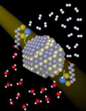 ولی تمامی این پژوهشگران این پروژه را در سالهای آتی عملی و تجاری میبینند. از این روش هر صنعتی که به هیدروژن نیاز دارد، سود خواهد بُرد. حتی صنایع دارویی و کودهای شیمیایی! عملکرد شیمیایی این روش چنین است: آنها به به یک جاذب رنگ یا کروموفور (Chromophore)، یک کاتالیزور برای ترکیب پروتونها و الکترونها و حلال که در این روش آب باشد، نیاز دارند. نانوذرات از نقاط کوانتمی سلنید کادمیوم (CdSe) به عنوان جاذب نور هستند.