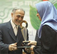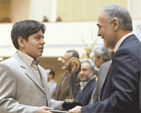 مراسم هشتمین دورهی جشنوارهی جوان خوارزمی با تقدیر از 37 طرح برگزیدهی بخش دانشاموزی و 23 طرح برگزیدهی بخش دانشجویی و آزاد، صبح روز شنبه 25 آذر 1385 با حضور معاون اول رئیس جمهور، وزیر و معاون پژوهشی علوم، تحقیقات و فناوری، وزیر و معاون نظری و آموزشی وزیر آموزش و پرورش و جمعی از رؤسای دانشگاهها، استادان، پژوهشگران و صاحبنظران علمی و فرهنگی کشور در محل سالن اجلاس سران کشورهای اسلامی برگزار شد. بهگزارش خبرگزاری دانشجویان ایران (ایسنا)، دبیرخانهی جشنواره پس از بررسی 961 طرح دریافت شده در بخش دانشجویی و آزاد، 47 طرح را به هیأت داوران ارائه و در نهایت 23 طرح بهعنوان برگزیدگان نهایی هشتمین جشنوارهی جوان خوارزمی در بخش دانشجویی و آزاد انتخاب شدند. از بین 23 طرح برگزیده، سه طرح (یک پژوهش بنیادی در علوم پایه، یک پژوهش کاربردی در زمینهی مواد و متالوژی و یک طرح ابتکاری در گروه هنر و معماری) بهعنوان رتبهی اول، هفت طرح بهعنوان رتبهی دوم و 13 طرح بهعنوان رتبهی سوم برگزیده شدند. در بخش پژوهشهای بنیادی، «دکتر یاسمن فرزان» با طرح «مطالعهی روبط بین متغیرهای جرم نوترینو و دوقطبی الکتریکی ذرات بنیادی» رتبهی اول، «خدیجه شمشاد شمسآباد» با طرح «بررسی تنوع ژنتیکی آنوفل در استانهای اردبیل، سیستان و بلوچستان و لرستان» و «امین موسایی» با طرح «محیطهای پیوستهی غیرکلاسیک و کاربردهای آن» رتبهی دوم، «رامین رادپور» با طرح «بررسی جهشهای مربوط به بیماری CBAVD در ایران»، «دکتر محمدرضا محمدی» با طرح «ساخت و بررسی سنسورهای گاز لایهی نازک نانوساختاری بر پایهی دیاکسید تیتانیوم با استفاده از فرایند سل، ژل ذرهای»، «دکتر رضا متفرقه تیلکی» با طرح «ساخت نانوذرات به روش کندوسوز لیزر پالسی»، «سعیده باقریفرد» با طرح «ارتباط عرفان و سیاست از دیدگاه امام خمینی(ره)» و «مهدی صمدی» با طرح «روشی جدید برای حل مسائل جایگشتی با پیچیدگی توانی» رتبهی سوم را کسب کردند. در بخش پژوهشهای کاربردی، «دکتر علی قاسمی» با طرح «ساخت جاذب ماکروویو با فریت باریم آلاییده شده» رتبهی اول، «سید محسن محمودی سپهر» با طرح «ساخت سیستم جدید شیشه، سرامیکهای زیرکونولیت برای دفع پسماندهای هستهای»، «آزاده آقالطیفی» با طرح «یک روز با کودک» و «بابک علینژاد» با طرح «طراحی و ساخت دستگاه ترموالکتریک دومنظورهی سرمازایی و تولید توان الکتریکی» رتبهی دوم و «شقایق نادری» با طرح «شناسایی چهره با مدل مخفی مارکف»، «فرهاد رستمی هیق» با طرح «ساقه خردکن پنبه و بقایای گیاهی» و «فرزاد اقبال قرهشیران» با طرح «شرحه شرحه (شرح شعر سهراب سپهری)» رتبهی سوم را کسب کردند. در بخش پژوهشهای توسعهای هشتمین جشنوارهی جوان خوارزمی نیز «سید امیرحسین حسینی» با طرح «بررسی رابطهی سرمایهی اجتماعی و سهم استانها در تولید ناخالص داخلی»، «علیرضا توکلپور صالح» با طرح «موتور استرلینگ خورشیدی با دمای محدود مجهز به کلکتور تخت خورشیدی»، «محمد» و «راضیه» «عربنژاد» با طرح «دستگاه رگیاب»، «مسعود دزیانی» با طرح «بررسی کاهش ضایعات پنیرهای ایرانی در صنعت لبنیات» و «علیرضا ترکزادهی اصفهانی» با طرح «دستگاه خودکار تولید گز آردی» رتبهی سوم را کسب کردند. بنابراین گزارش، در بخش ابتکار نیز «خدیجه احمدینبی» و «نرگس شیربانی» با طرح «بعد و انعکاس آن در گرافیک» رتبهی اول، «نسرین جاغوری» با طرح «هنر خوارزمی» و «محمد حسین» و «حمیدرضا» «خضریان» با طرح «سیستم دیجیتالی اندازهگیری طول با دقت میکرون به استفاده از الگوی دقیق» رتبهی دوم را کسب کردند. در بخش دانشاموزی هشتمین جشنوارهی جوان خوارزمی نیز - که به طرحهای ارائه شده از سوی دانشاموزان مقطع متوسطه، کاردانش و پیش دانشگاهی و دانشجویان دورهی کاردانی پیوستهی آموزشکدههای فنی و حرفهای و مراکز تربیت معلم اختصاص دارد - 22 هزار و 831 طرح از 32 استان کشور در گروههای تخصصی برق و الکترونیک، کامپیوتر، فیزیک، شیمی، عمران، مکانیک، ریاضی، علوم زیستی و پزشکی، ادبیات و زبان فارسی، 