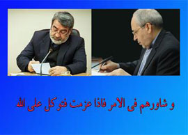و شاورهم فی الامر فاذا عزمت فتوکل علی الله (قرآن کریم/ آل عمران 159)