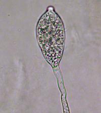 «پراکنش اسپور» این قارچ، راه منتشر شدن در بین گیاهان است. این اسپورها در دمای بالای 10 درجه سانتیگراد و رطوبت بیش از 75 درصد بین محصولهای زراعی منتشر میشوند. |