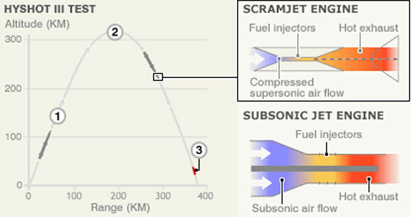 آزمایش یک موتور جت آزمایشی با سرعت 10 برابر سرعت صوت در نقطهی دور افتادهای در استرالیا با موفقیت انجام شد.