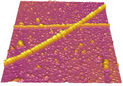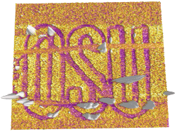 اخیراً محققانی از «دانشگاه ایالتی اورگان» (OSU) توانستهاند با استفاده از یک فرایند نانویی، کوچکترین تصاویر ممکن از یک سگ آبی و همچنین آرم این دانشگاه را ترسیم کنند. این تصاویر چنان کوچکاند که با هیچ میکروسکوپ نوریای دیده نمیشوند. بهگزارش ستاد ویژهی توسعهی فناوریهای نانو بهنقل از سایت «هرالد دموکرات» (Democrat Herald)، «جورج بوچترل» (Jorg Bochterle) یکی از دانشجویان آلمانی فیزیک «دانشگاه ایالتی اورگان» (OSU) میگوید: «در فرایندهای نانولیتوگرافیای که برای آزمایشهای مربوط به الکترونیک نانولولهای و «گرافنی» (Graphene) انجام میدهیم باید قادر باشیم تا الگوهای دلخواه را با دقت بسیار زیادی ترسیم کرده و برش دهیم و بههمین دلیل سعی کردیم تا چند الگوی شناختهشده را ترسیم نموده و به این شکل یک تمرین بسیار سودمند انجام دهیم». نوک قلمی که برای ترسیم نقوش مذکور استفاده شده است ۱۰۰۰۰۰ بار کوچکتر از نوک خودکار معمولی است و تنها بهاندازهی یک مولکول پروتئین منفرد عرض دارد. این قلم توسط یک میکروسکوپ نیروی اتمی (AFM) کنترل میشود. محققان مذکور این ابزار را طوری برنامهریزی کردند که بر روی قلم ایجاد فشار کرده و خطوط دقیقی با عرض یک مولکول منفرد رسم نماید.